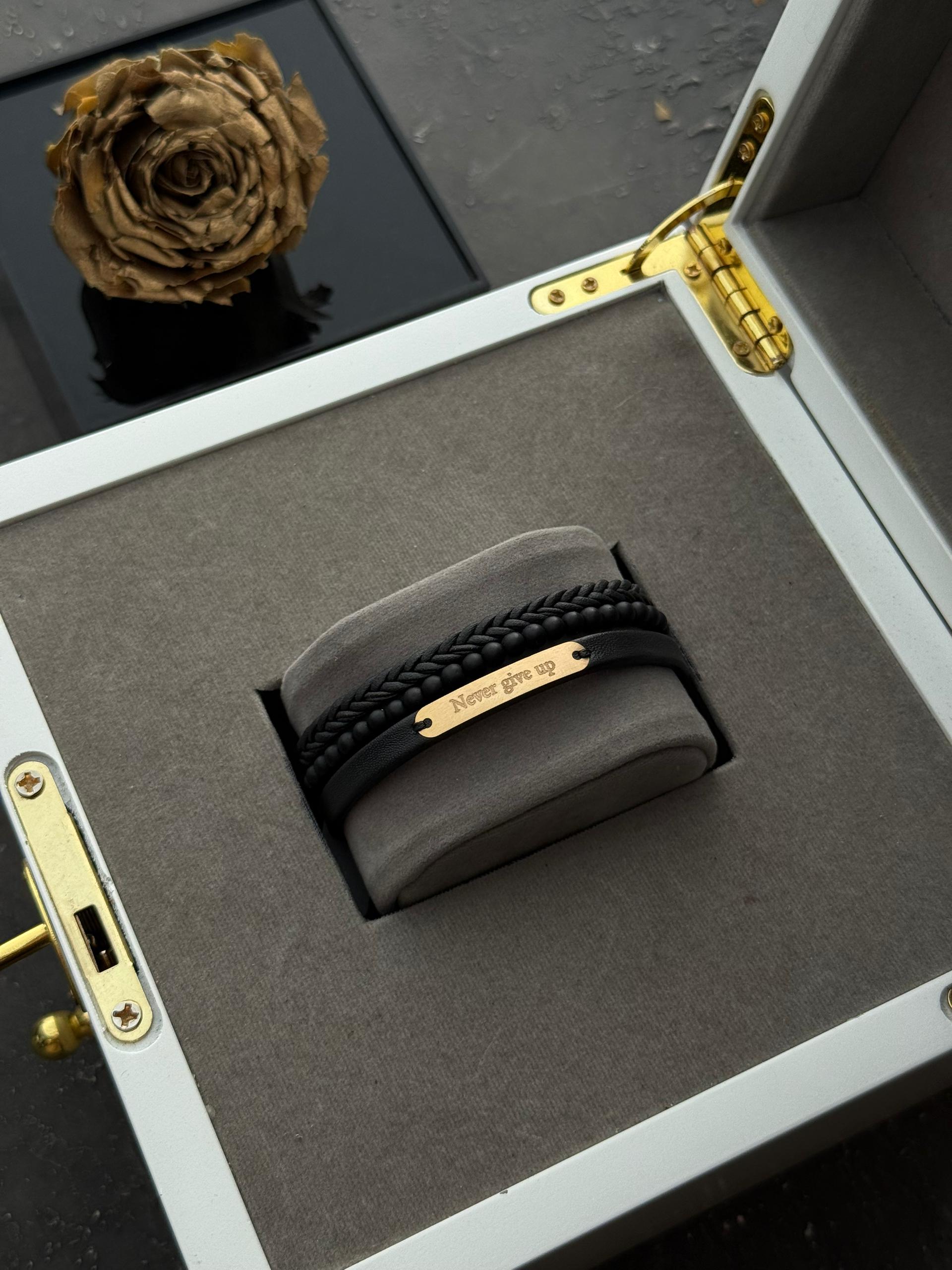 دستبند چرم طرح NEVER GIVE UP